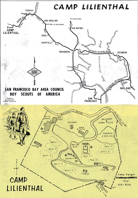 San Francisco Council Patch, (c 1950) San Francisco Bay Area Council History B S A B S A Los Mochos Symbol, Oakland Area Council (1945 - Present) Camp Loomer Symbol, Oakland Area Council (1957 - 1973) TC San Francisco Training Camp symbol, San Francisco Council (1917 - 1924) Camp Moore symbol, San Francisco Council (1938 - 1951) Camp Lilienthal Symbol (Fairfax location), San Francisco Council (1928 - 1973) Camp Royaneh symbol, San Francisco Council (1925 - Present) Camp Lilienthal (Stern Grove location) Symbol, San Francisco Council (1919 - 1925) Boy Scouts of America, San Francisco Bay Area Council • 1001 Davis Street, San Leandro, CA 94577-1514, (510) 577-9000  |  Contact Webmaster Camp Lilienthal (Marin County) Historical Documents 1929 - 1973 Camp Lilienthal patch (c 1955), Image courtesy of the Adam Lombard Collection Camp Staff / Rangers Patches / Memorabilia Boy Scouts of America, San Francisco Bay Area Council • 1001 Davis Street, San Leandro, CA 94577-1514, (510) 577-9000 Camp Lilienthal drawings,1951